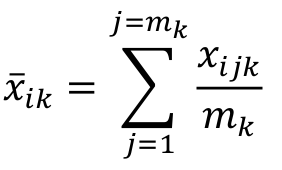 Further, , the value of component i of vector j of group k, must be taken into account to understand how the method operates. Thus, the average rate between the mk vectors of component i of group k is given by equation 2.