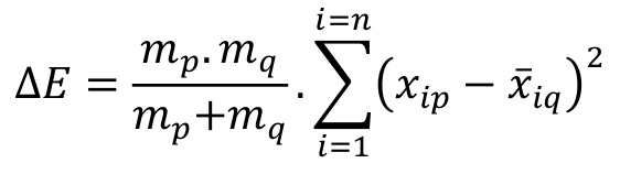 Increase in the internal error of group k, in case groups p and q are clustered, is shown by Equation 5.