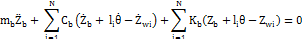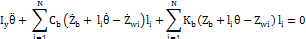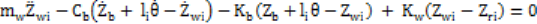 mb is the mass of the chassis, Zb is the bounce displacement of the center of gravity (C.G.) of the chassis, Theta is the pitch angle of the chassis, Zwi is displacement of the wheel i, Iy is the chassis inertia, mw is the mass of the wheel, li is horizontal distance between the chassis C.G. and the suspension i, Cb is the damper coefficient and Kb is the suspension stiffness.