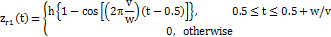 the excitation delay (taui) is a function of the vehicle velocity (v) and of the distance between the first suspension (l1) and the suspension i (li). Furthermore, the bump with height h and width w is modeled in Equation (5).
