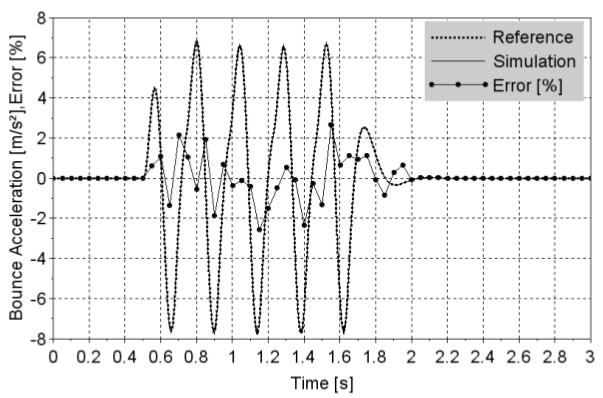 A half car model represents the direct problem, whose solution was compared with a reference solution. Vehicle bounce and pitch accelerations were correctly simulated.