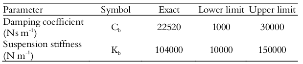 The exact values and the limits of the search spaces of the estimated suspension parameters are present in Table 2.