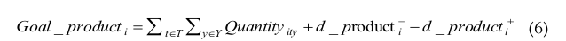 d_producti+: positive deviation from the goal for the number of items of product of type i to be produced