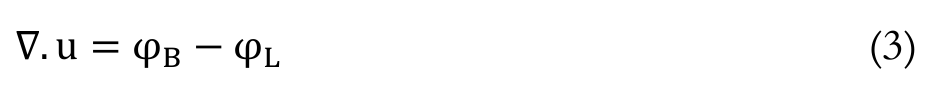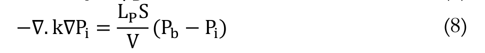 (2)Equation 2 is applicable in porous media. However, in tumors, sources and sinks are present. For example, between interstitial space and the blood vessels, fluid is exchanged; therefore, the steady state incompressible form of the continuity equation must be modified as Equation 3: