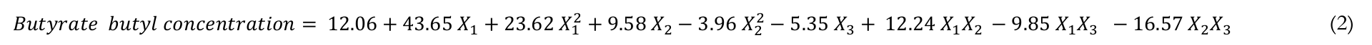 where X1 = temperature; X2 = molar ratio (butanol: butyric acid); X3 = biocatalyst mass