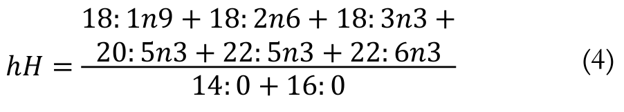 The h/H ratio considers the functional activity of fatty acids in the metabolism of lipoproteins that transport plasma cholesterol, whose type and quantity is related to the higher or lower risk of cardiovascular disease incidence (Santos-Silva et al., 2002).