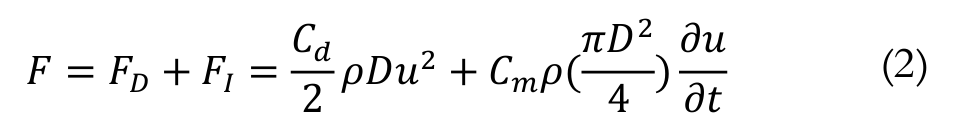 Morison equation (Sorensen, 2006) consists of a drag and an inertia term that can be written as Equation 2: