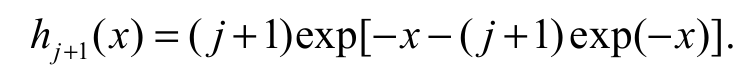 (10)where hj+1(x) = dHj+1 (x)/ dx. The expSGu pdf with power parameter j+1, hj+1(x), (for j 0) becomes Equation 11: