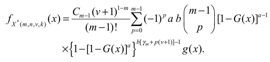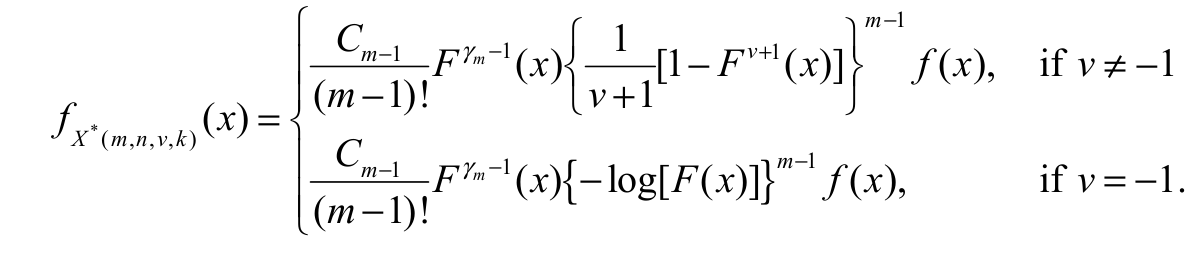 [EGSGU]It is well known that if v = 0, k = 1 then X* (m, n, v, k) reduces to the (n-m+1)th order statistics Xn-m+1 : n from the sample X1, …, Xn, and when v = -1, then X* (m, n, v, k) reduces to the mth lower k-record value. The main result of this section is given by Equation 24.