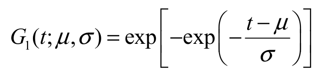 Gumbel (SGu) model. Let T be a random variable having cdf Equation 1. The SGu