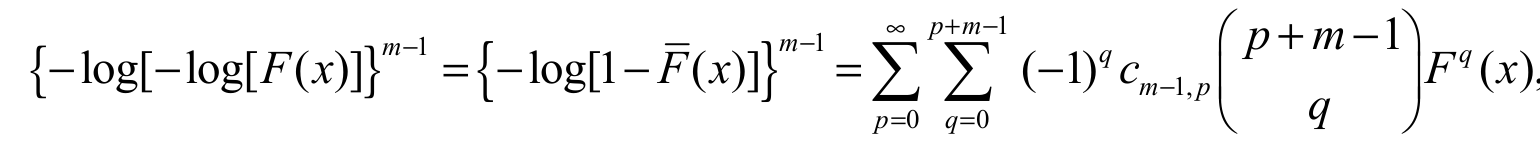 Using the binomial expansion in the first sentence of Equation 18 and inserting cdf Equation 2 and pdf Equation 3, we readily obtain Equation 19: