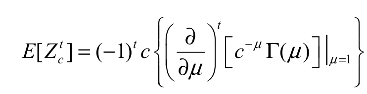 (24)Based on the previous equation, we can easily obtain the dgos of EGSGu distribution since it depends on exp-G densities. Furthermore, several mathematical quantities of the EG dgos can be obtained from those quantities of exp-G distributions. We provide an example for the dgos moments from EGSGu distribution. Before that, an additional comment on the moments of the expSGu is in order. Inspired by Andrade et al. (2015), we can find a formula for the tth moment Zc ~expSGu of with power parameter c > 0. By setting w = exp{-z}, and using Andrade et al. (2015)'s Equation 14, the tth moment of Zc ~expSGu can be written as Equation 25: