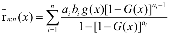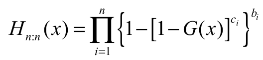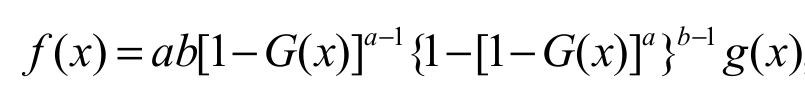 For an arbitrary baseline cdf G(x), a random variable Yc has the exp-G distribution with power parameter c > 0 say Yc ~ exp-G if its cdf and pdf are given by Hc(x) = G(x)cand hc(x) = cg(x)G(x)c-1 respectively. For a comprehensive discussion about the exponentiated distributions, see a recent paper by Tahir and Nadarajah (2015). Based on some results in Cordeiro and Lemonte (2014), we can express the EG cdf Equation 2 as Equation 9.