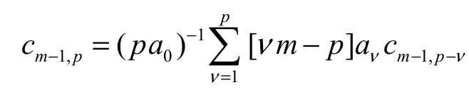 and the coefficients cm-1,p(for p = 1, 2, …) are determined from the recurrence equation