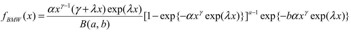 Cordeiro (2010) (BMW distribution). Their respective densities are given by