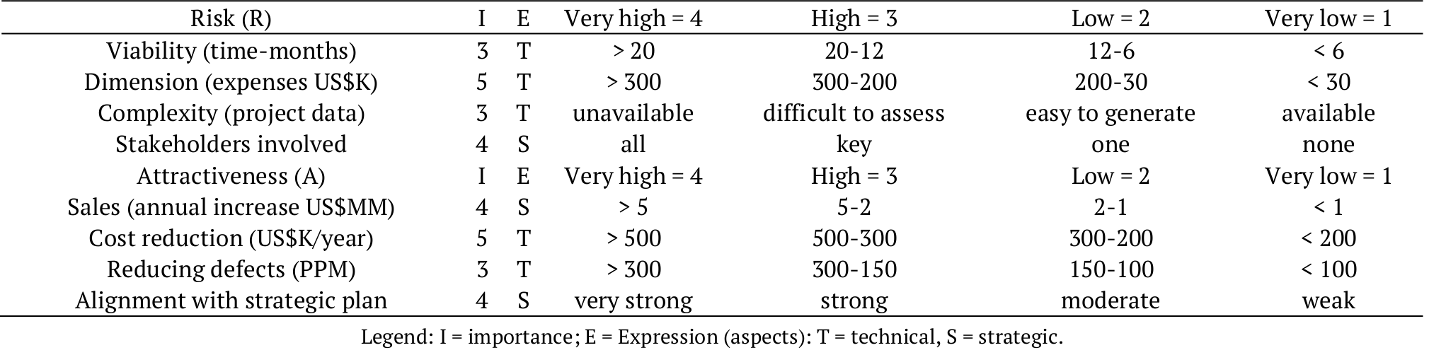 Phase 2 (Select projects): This phase is composed by a sequence of: portfolio analysis (Table 5); select projects; define scope, time, and cost; maximize staff efficiency by multi-task assignments to LSS staff; analyze attractiveness versus risk (Table 6).