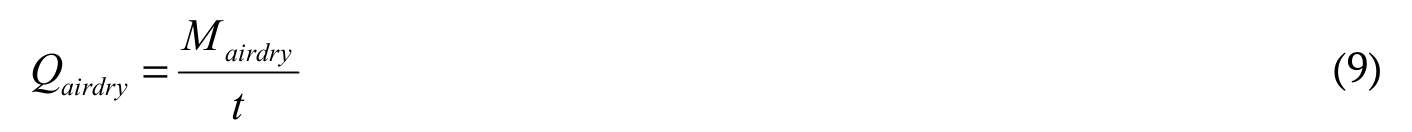 In which dry air is the dry air flow rate (kg dry air min.-1), t is the drying time (min.). The fan airflow can be given by Equation 10: