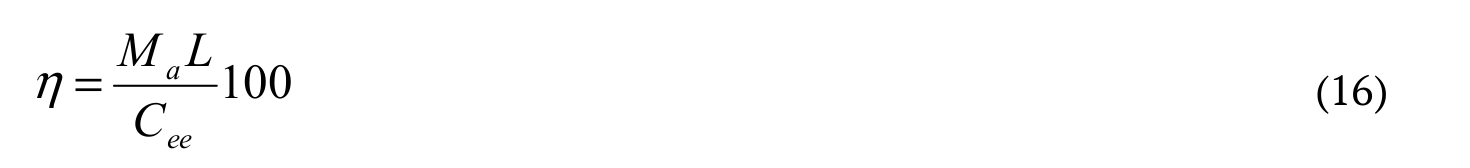 ɳ dryer yield (%); L latent heat of vaporization of water (2,500), kJ kg of water; Ceeis specific energy consumption (kJ).