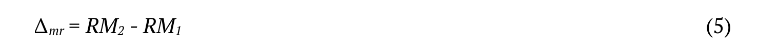 Δmr is the variation of the humidity ratio (kg of water vapor/kg of dry air), RM2is the exhaust humidity ratio (kg water vapor/kg dry air), RM1 is the ratio of mixture of air in the initial condition (kg of water vapor/kg of dry air). The total dry matter content can be calculated by Equation 6: