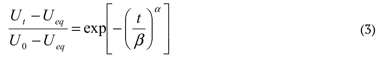 (2)In the Weibull distribution model, Ueq is considered as an additional parameter to be calculated (Weibull, 1939). Then, the Weibull Model is described as Equation 3: