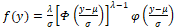(shape parameter or asymmetry). The distribution Y has the following probability density function:
