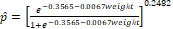 In the modeling, neonatal death information (Y = 1) was considered as a response to a single explanatory variable, the weight (g) of newborns from high-risk pregnancies.