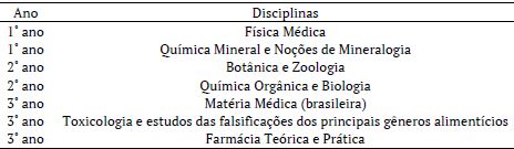 Gradativamente, o currículo acadêmico foi sendo substituído e o enciclopedismo e as ciências positivas ganharam espaço. Acrescente-se que uma nova reorganização ocorreu no dia 3 de agosto de 1892, pela Lei n. 4110, mediante a qual o curso passaria a fornecer dois diplomas: o de farmacêutico, com duração de três anos, e o de bacharel em Ciências Naturais e Farmacêuticas aos que além dos três anos cursassem mais um ano de estudos e defendessem uma tese. Ver Tabela 3 a seguir: