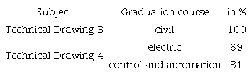 Regarding the student profile, it was found that: in the subject of Technical Drawing 3, all students are from Civil Engineering; while in Technical Drawing 4. 69% are students of Electrical Engineering and 31% of Control and Automation Engineering (Table 1). Even if it was expected, it is understood that it is necessary to verify that there are no students from other courses, given that the subjects are equivalent to each other and can be used as an elective subject for other Engineering courses. In this sense, we verified that the enrolled students attended the course because it is mandatory.