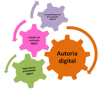 A primeira delas foi um mapeamento preliminar da competência Autoria Digital. Com base nesta primeira análise de dados, identificou-se que esta competência faz parte do grupo da Fluência Digital (Behar, 2013) correspondendo a um resultado da etapa 1 da metodologia. Em consonância com Behar (2013), a autora Pinho (2011, p. 9) explicita que a competência Fluência Digital é voltada “[...] para o uso apropriado, criativo, autônomo e autoral da tecnologia [...]” visando uma educação com efetiva inclusão digital dos cidadãos.