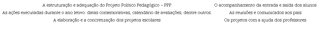 Nesse depoimento é possível perceber características do modelo de gestão compartilhada, no qual cada um executa sua função, sem envolvimento em outras demandas, e/ou características do modelo de gestão gerencial, cujo diretor ocupa o papel maior da hierarquia e apenas delega atividades. Qualquer que seja o modelo no espaço escolar, a omissão quanto ao envolvimento nas atividades pedagógicas da escola, por parte dos gestores, pode representar: um forte indicativo de que os profissionais da educação ainda não conhecem seus papéis dentro de uma unidade escolar que deva funcionar sobre princípios democráticos; o medo de assumir compromissos, considerando que a tendência de responsabilização injetada pela política neoliberal, no processo de descentralização, sobrecarrega as unidades escolares e, por isso, os gestores preferem delegar as tarefas para minimizar o peso das responsabilidades; forma de controle sobre a equipe, posicionando-se apenas como fiscalizador, perpetuando também a forma de organização implementada pela política de mercado capitalista.