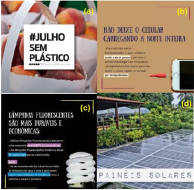 Nas postagens, percebeu-se que houve uma intenção de mostrar informações sobre o conceito de consumidores verdes e a importância dessa postura para o nosso planeta e da presença das árvores nas cidades, como poderia ser solicitado o tombamento de uma árvore e esse procedimento seria feito. Há, ainda, uma sensibilização para a necessidade de seguir regras, como fechar a torneira quando não estiver utilizando, ao tomar banho e não deixar o chuveiro ligado direto, ou seja, criar hábitos sustentáveis para preservar a natureza.