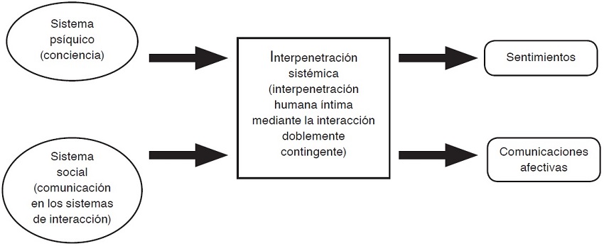 En consecuencia, desde la óptica sistémica luhmanniana lo que ocurre no tiene que ver con la emergencia de sentimientos colectivos que compartan los SPS, sino con la interpenetración humana íntima generada entre ellos, donde los constructos personales de cada uno se desarrollan en una coevolución recíproca a través de irritaciones comunicativas que se ejercen mutuamente y que inciden en la formación de sus correspondientes estructuras de expectabilidad psíquica.