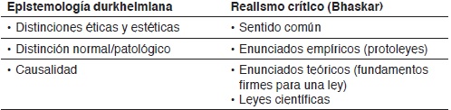Sin embargo, donde podríamos encontrar un vínculo más fuerte entre la propuesta epistemológica de Durkheim y el realismo crítico tiene que ver con su distinción entre lo normal y lo patológico. En Las reglas del método sociológico, Durkheim dedica todo un capítulo al tema, en tanto que se vuelve uno de los elementos importantes no sólo de su ontología social (la sociedad como un organismo colectivo tendente al cumplimiento de funciones), sino para la definición de las estrategias de investigación de lo social, así como para el papel de la sociología como una ciencia que comprende la normalidad desde lo patológico: