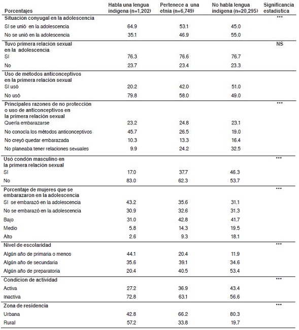 Respecto del análisis central de este artículo, los hallazgos sugieren el importante peso no sólo de hablar una lengua indígena y tener pertenencia étnica sino de contextos marcados por la falta de acceso a información y servicios de salud sexual reproductiva (por ejemplo, métodos anticonceptivos), en los estratos socioeconómicos menos favorecidos (INEGI, 2016).