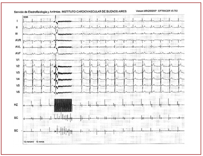 Fig. 1. La estimulación a alta frecuencia sobre el plexo ganglionar durante un procedimiento de ablación se manifiesta como bradicardia sinusal por influencia vagal.