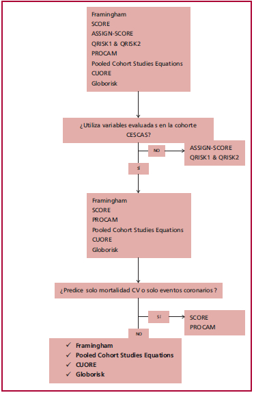 El trabajo actual que se realiza en la cohorte CESCAS no solo permitirá incrementar la complejidad de los análisis de validación externa de las ecuaciones desarrolladas, sino que también permitirá la elaboración de un propio modelo de predicción de riesgo regional y la valoración de otro tipo de variables de predicción no convencionales como biomarcadores de inflamación o aterogénicos (PCR, lipoproteína A).