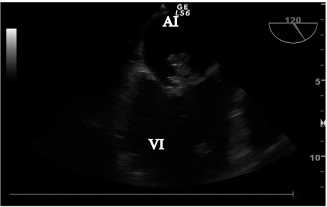 Ecocardiograma transtorácico (ETT): Tumoración heterogénea en la cara auricular de la valva mayor de la válvula mitral con una base amplia de implantación sobre la valva y gran motilidad tanto hacia la aurícula como al ventrículo en telediástole. Los diámetros son de 27 mm x 17 mm. Genera insuficiencia mitral de grado moderado, teniendo en cuenta la velocidad anterógrada y el jet que contacta con la pared posterior auricular por Doppler color. La función sistólica se mantiene conservada.