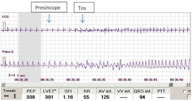 En presencia de hipotensión arterial, la bradicardia persistente puede precipitar la pérdida de conocimiento o prolongar el tiempo de recuperación de los síntomas. Si bien es conocido que toser incrementa la FC 2, hasta donde llega nuestro conocimiento, nunca se ha propuesto a la tos como una maniobra complementaria para evitar el SVV.