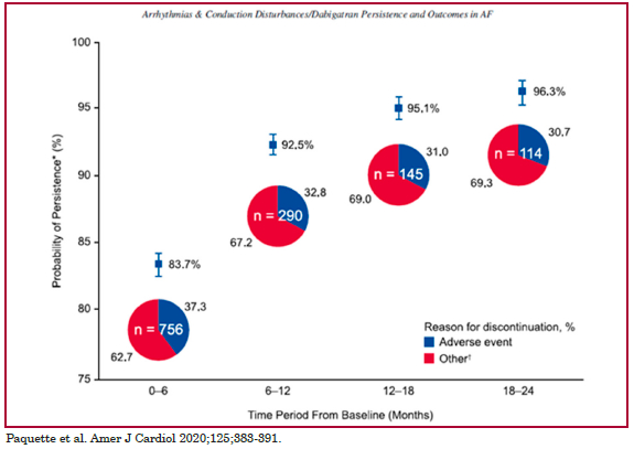 11. Paquette M, Franca LR, Teutsch C, et al. Dabigatran Persistence and Outcomes Following Discontinuation in Atrial Fibrillation Patients from the GLORIA-AF Registry. Am J Cardiol 2020;125:383-91. https://doi.org/10.1016/j.amjcard.2019.10.047
