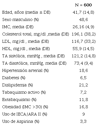 Desde septiembre de 2020 hasta mayo de 2021, se incluyeron 600 pacientes en el estudio (edad media 41 ± 14,8 años, 48% sexo masculino). Las características de la población se detallan en la Tabla 1. La mediana de tiempo entre el diagnóstico de COVID-19 y el ingreso al estudio fue de 40 días (rango 16-120 días).