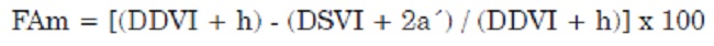 Siendo: DD: diámetro diastólico; DS: diámetro sistólico; h: espesor diastólico combinado de la pared posterior y el septum interventicular (PPd +SIVd / 2); hfs: espesor sistólico combinado (PPs +SIVs / 2) y a´: punto mesoparietal en sístole calculado a partir de la siguiente fórmula: