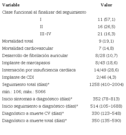 Al finalizar el seguimiento, el 67% de los pacientes habían empeorado su clase funcional, con el 44% de los pacientes en CF III-IV. (Tabla 4).