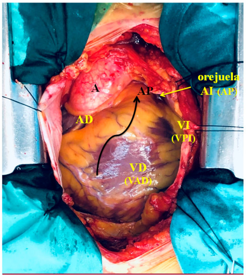 Ubicación anatómica espacial. Al observar el corazón en su posición natural en el mediastino (Figura 1) fácilmente evidenciamos que la aurícula derecha corresponde a esta situación topográfica espacial. El resto de las cámaras son erróneas en su nomenclatura con relación a la disposición tridimensional que ostentan. El ventrículo derecho es ántero-derecho, casi no deja espacio en esta ubicación al ventrículo denominado izquierdo, el cual al ser desplazado por el ventrículo antero-derecho en su rotación levógira lo lleva a una ubicación apenas izquierda, pero fundamentalmente posterior en casi todo su volumen, debiendo ser llamado en consecuencia ventrículo póstero-izquierdo. Por su parte la aurícula izquierda se halla aún más rotada hacia atrás, al punto que se ubica por detrás de la aorta ascendente, separada de esta por el llamado seno transverso de Theile y apenas emerge el extremo de su orejuela en una posición izquierda (Figura 1). Por lo tanto, debería ser mencionada como aurícula posterior. Esta situación explica claramente la rotación levógira del corazón en su conformación helicoidal.