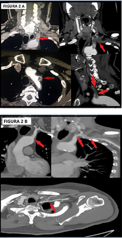 La angiotomografía del cayado de la aorta y el miembro superior comprometido permite confirmar el diagnóstico de trombosis arterial subclavia como posible fuente embolígena en pacientes con ACV posterior, así como identificar algunas de sus causas (aterosclerótica, SOT arterial, disección, traumática, etc.)
