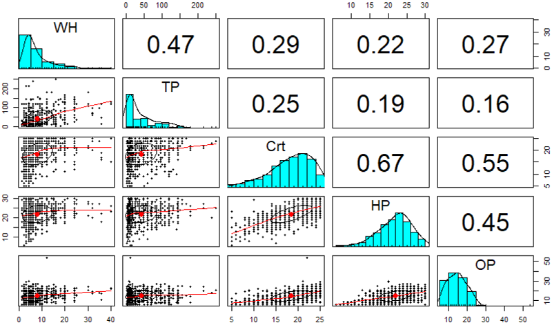 Finally, we verified the correlation indexes between the scores presented in the HP and OP variables with the variables weekly hours dedicated to the activity (WH), time of practice (TP) and passion criterion (Crt), represented by the intensity with which the subjects perceive themselves involved with the activity. The results are shown in Figure 1.