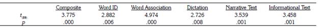 Due to the importance of reading narrative and informational text as academic skills, we also analyzed each of those constructs by sub-test, as seen in Tables 5 and 6 below.