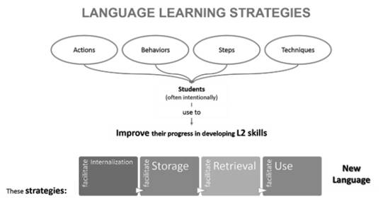 Concerning the importance of learning strategies in EFL learning, Oxford (1997) asserts that they are “steps taken by students to enhance their own learning” (p. 1). Also, Chamot and O’Malley (1996) understand learning strategies as special thoughts or behaviors that students use to comprehend, understand, learn, and handle new information. Concerning this, the conscious use of learning strategies helps students to become more aware of their own learning processes as they become more autonomous during the development of the class activities (see Figure 1).