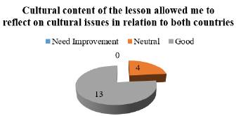 Expressing cultural knowledge equates to the capacity to use the target language to express what undergraduates knew about their own culture and that of the target language. As expressed by Goldstein (2015), culture is bounded to language. In this sense, we can say that undergraduates used the language to express their cultural knowledge in relation to the topics presented.