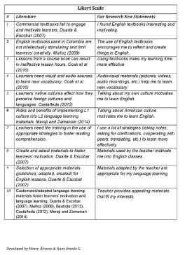 Based on our teaching experience as educators from the ELT program, we identified that EFL materials fail to engage undergraduates from the Basic English I course in EFL learning. We also noticed that the type of content and learning activities were not sufficiently appealing and challenging for undergraduates. To ratify these concerns, we conducted a Likert scale survey (see Appendix A) with the undergraduates and language teachers of Basic English I. The first result evinced that materials failed to engage undergraduates in the EFL lessons. The second result shows undergraduates’ desire to learn English by using the language to explore their own cultural background and the culture of the target language. Consequently, this study aims to bring cultural elements bounded in the use of the language to foster EFL learning in undergraduates. Finally, we decided to implement an informed approach to provide learning strategies that fit undergraduates’ learning styles to foster EFL learning, which was a concern evidenced in the needs analysis.