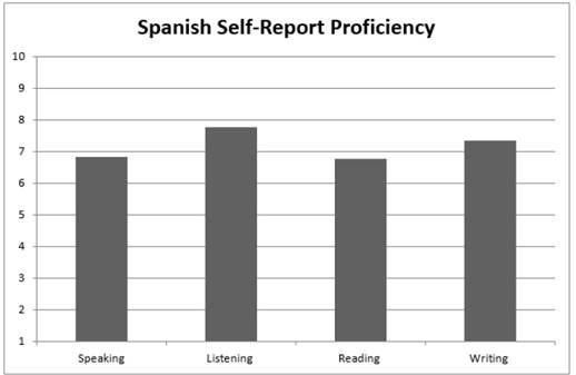 Introductory survey. A survey regarding the language proficiency self-concept in the four Embera and Spanish language skills was applied to the indigenous students who participated in the research project. Nunan and Carter (2001) explains than when a child grows up with simultaneous bilingualism, one of the two languages is dominant, which means that they feel more comfortable using one language than the other. Therefore, we asked the students to self-report their language skills from 1 to 10 so that we could have a reference regarding their dominant language in order to plan the teaching strategies. According to the survey, the indigenous students felt more comfortable using Spanish than Embera. They reported Spanish language proficiency skills individually and the average rank for the four skills was 7.1 with listening and speaking being the strongest skills (see Appendix A). In contrast, their Embera language proficiency was scored 4.7, where reading and writing where the weakest skills (see Appendix B).